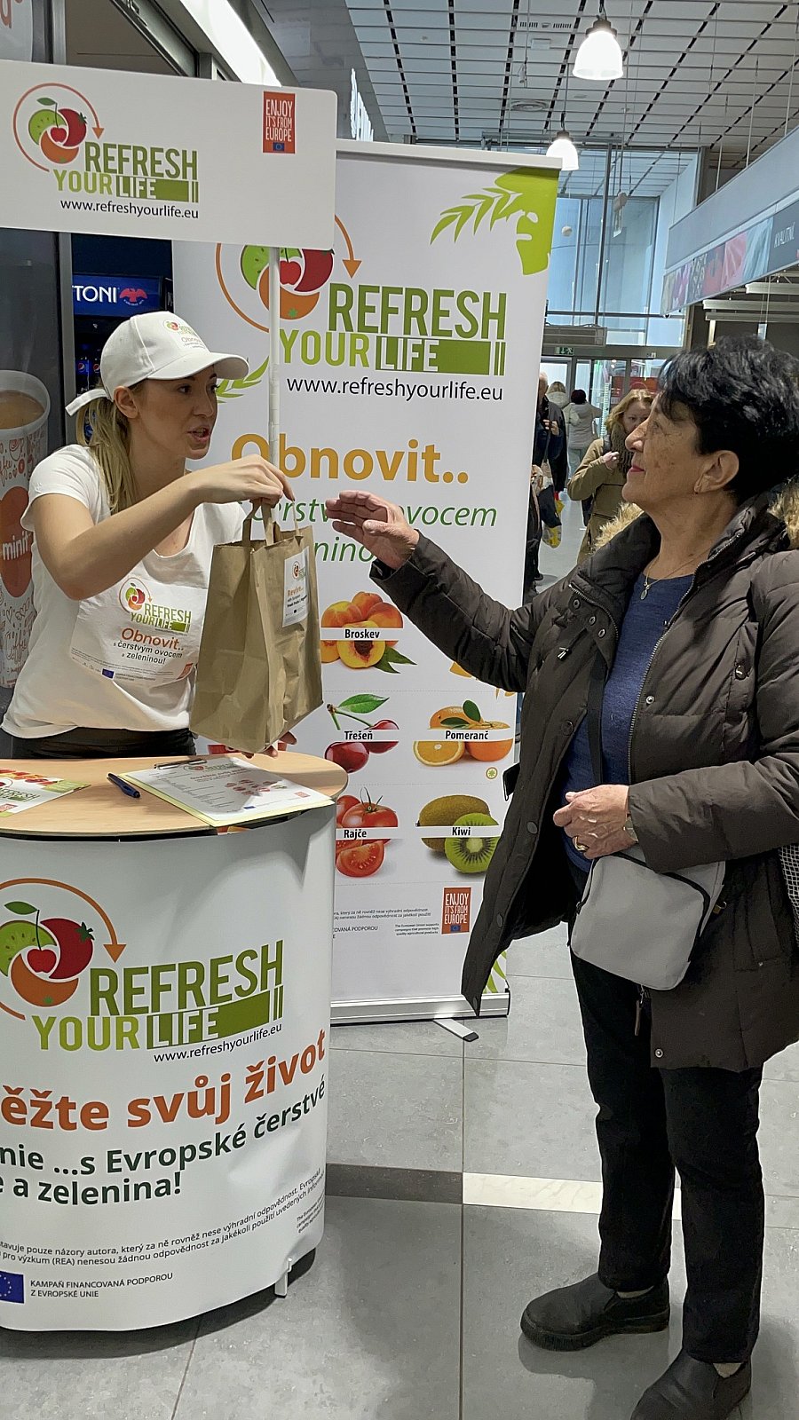In the frame of the implementation of the EU financed campaign Refresh your life, a serie of promo action has taken place in Prague city, in the Czech Republic , from 13 to 22 February 2023 in supermarkets and food stores! During the promo the consumers had the opportunity to learn more about the Refresh campaign, get informed about the superior quality of European fruits and taste their delicious flavor!!!
